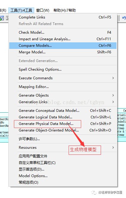 建立好各个实体之间的关系之后,我们就可以转换成物理模型了:工具-generatePDM