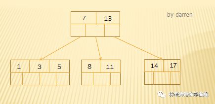 由于5小于7,插入左子树,11,17大于7,插入右子树。叶子结点没有满4个关键字,故可以直接插入5,11,17