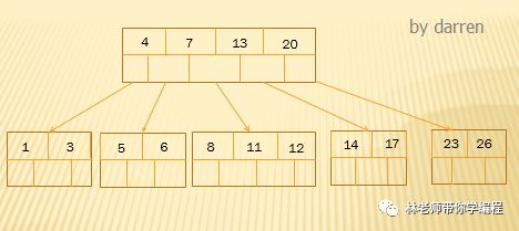 如,下面是一棵典型的B+tree(假设每个结点最多有4个关键字)