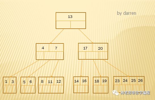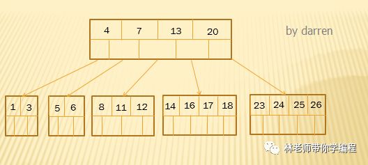 在上面的例子中:将下面数字插入到一棵5阶B-Tree中:[3,14,7,1,8,5,11,17,13,6,23,12,20,26,4,16,18,24,25,19]