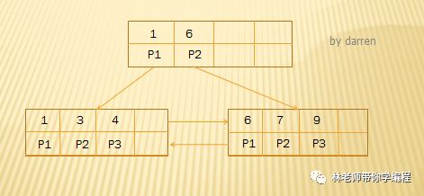 1)插入新元素,如果叶子结点空间足够,则插入其中,遵循从小到大排序;