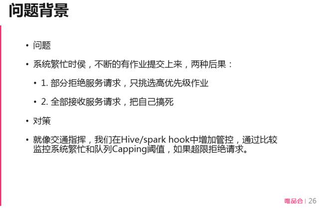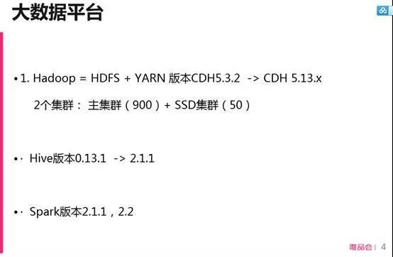 大数据平台在唯品会近几年有了飞速发展,已经完成了从0到1的过程,各个部门逐渐将其引入到实际业务中。 “百尺竿头,更进一步”,在业务压力和集群负载同步增加的情况下,如何实现平台优化是2017年的主旋律。