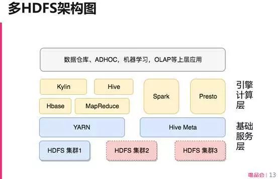 从多HDFS架构上来看,我们可以支持更多的HDFS集群,在上面暴露给业务方的是一个统一的yarn和Hive metastore。通过底层的改变,我们希望用户如果通过metastore的访问可以做到透明。但是如果用户直接访问HDFS层,就需要通过设置一个缺省的hdfs集群保持不变。