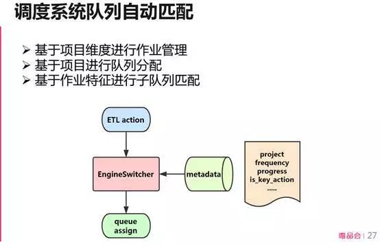 实现作业资源管制的方法是首先我们能够认识来的作业是什么项目的,作业的优先级设置是怎样的。在平台这一层还需要配置不同优先级的队列,就像马路上不同的车道一样的道理。这里核心功能就是engineswitch可以通过读取metadata,给作业填上不同的队列信息进行作业提交。