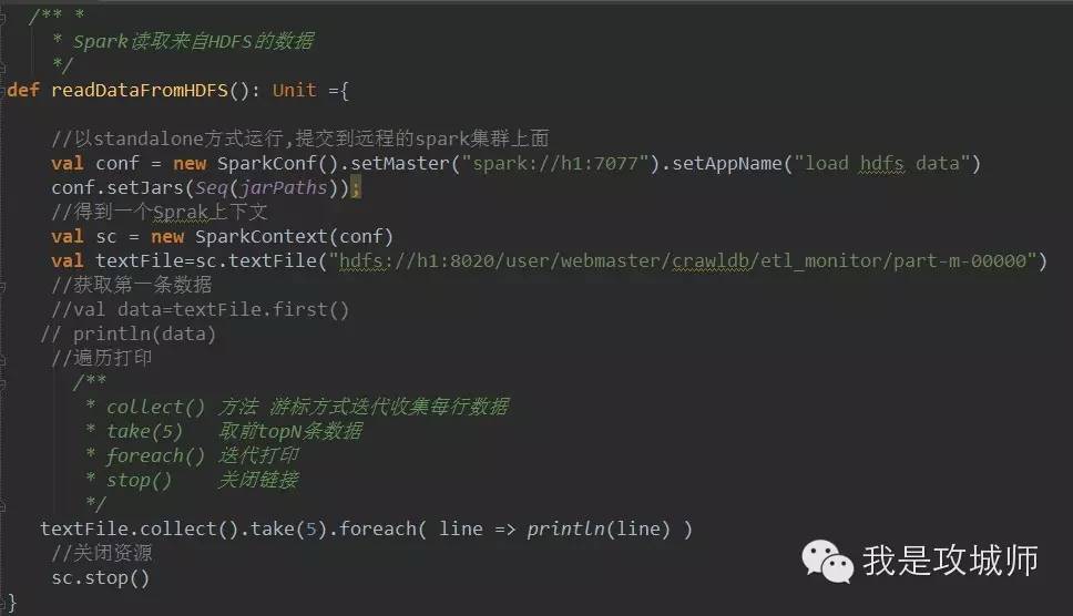 val conf = new SparkConf().setMaster("spark://h1:7077").setAppName("load hdfs data")