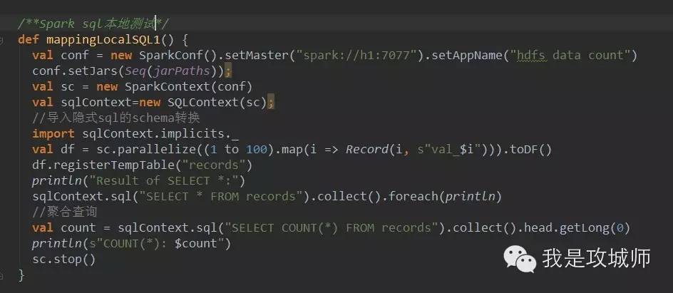 val conf = new SparkConf().setMaster("spark://h1:7077").setAppName("spark sql query hdfs file")