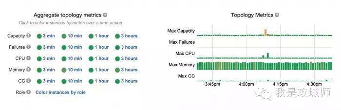 Easy debugging:每个任务是进程级隔离的,从而很容易理解行为、性能和文件配置。此外,Heron topologies复杂的UI如图3所示,可快速和有效地排除故障问题。