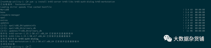 [root@cdp-utility-1 ~]# yum -y install krb5-server krb5-libs krb5-auth-dialog krb5-workstation