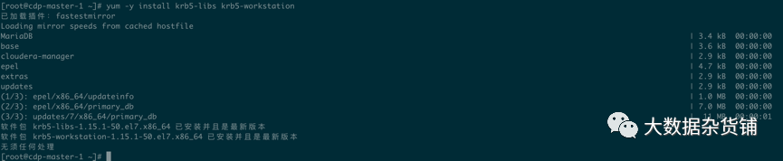 [root@cdp-master-1 ~]# yum -y install krb5-libs krb5-workstation