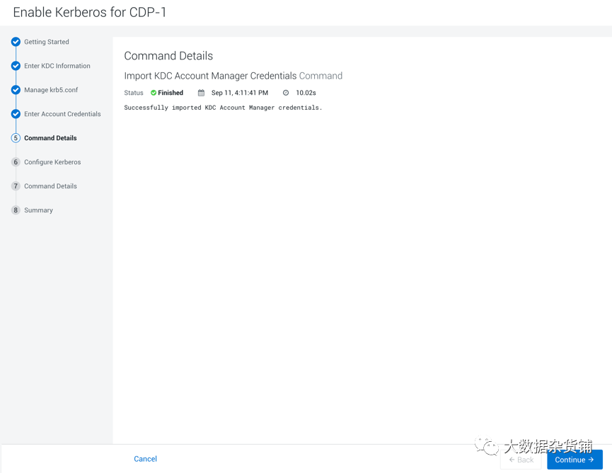 点击下一步,导入KDC的账户凭证并进行验证,如果没有问题,则点击继续,有问题的话则回到之前的步骤进行问题修复。