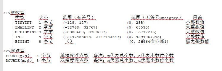 先来看一下,在数据类型中分为整型和浮点型,先来看一下int型和bigyint型数据,首先建立一张表字段类型如下