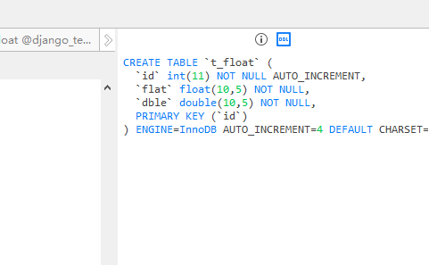 从图中可以看出结果依然是正常的,那么我们暂且认为在使用pandas的sum方法来计算int型和bigyint型数据时,不会出现特殊的小数情况。接下里继续看一下float类型数据是否运行正常,先建立一张数据表字段数据类型有float,具体如下