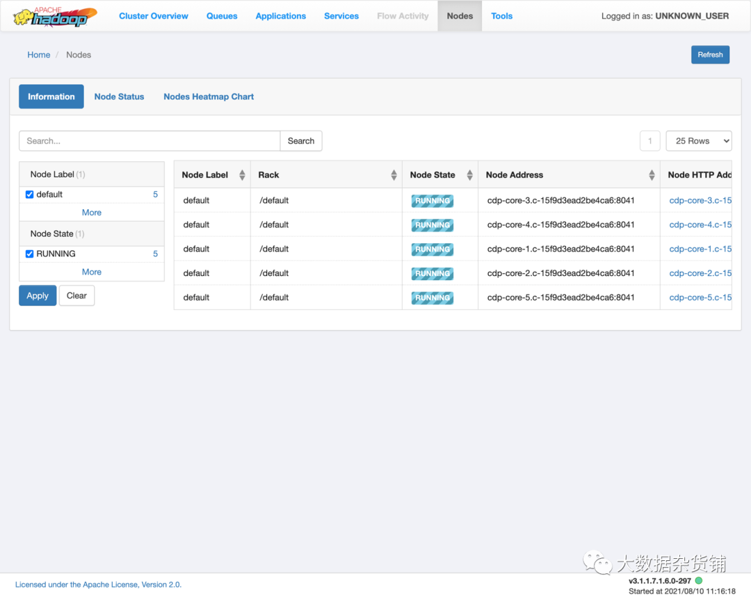 该节点上的Yarn Web用户界面页面,可以查看有关该NodeManagers正在运行的集群节点的信息。