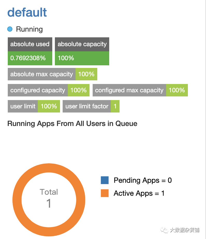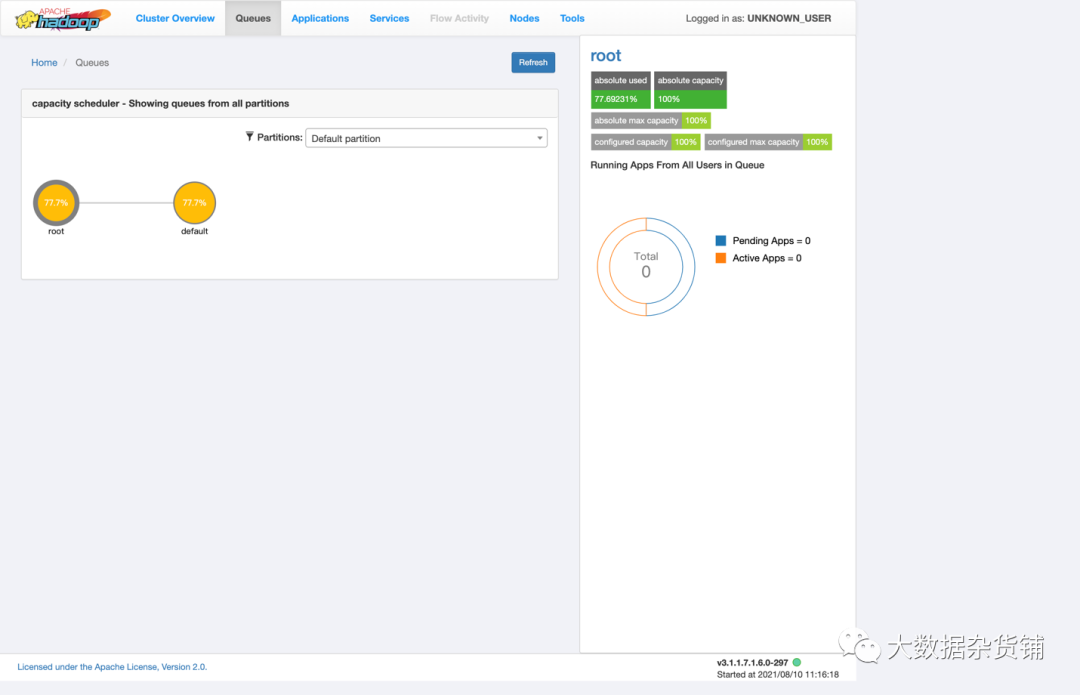该队列页面是YARN队列调度依赖和显示的细节。您可以查看所有分区的队列或过滤以查看分区的队列。