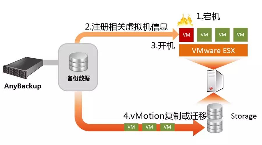 “一切不以恢复为目的的备份都是耍流氓“,恢复效率也是用户非常关心的方面。谁都不愿意苦等几小时或几天去恢复一台虚拟机,特别当你迫切要用那台虚拟机的时候。对于这种紧急场景,AnyBackup通过Instant Recovery方案,可帮助用户在5分钟左右恢复一台TB级虚拟机,满足业务应急。