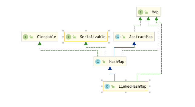 LinkedHashMap继承了HashMap类,是HashMap的子类,LinkedHashMap的大多数方法的实现直接使用了父类HashMap的方法,LinkedHashMap可以说是HashMap和LinkedList的集合体,既使用了HashMap的数据结构,又借用了LinkedList双向链表的结构保存了记录的插入顺序,在用Iterator遍历LinkedHashMap时,先得到的记录肯定是先插入的,也可以在构造时带参数,按照访问次序排序。