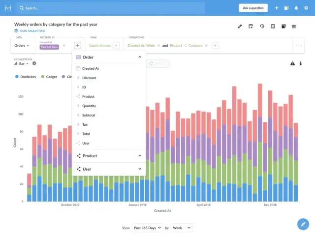 简单,无代码的用户流程可以深入挖掘并切割暴露仪表板下的数据。仪表板和图表可作为深入分析的起点。
