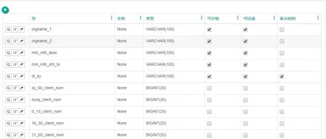 数据表模型的管理,可设置字段类型,维度/可否过滤/可否做时间列,二次加工字段,统计指标