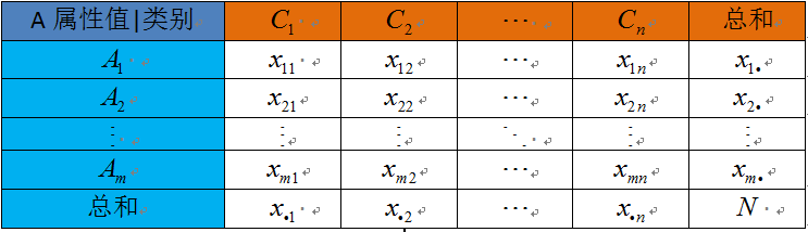 这里属性A有m个属性值,整个数据共有n个类别,N为所有数据记录数,Xij表示属性值为Ai、类别为Cj的样本数,X.j表示第Cj类的样本数,同理Xi.表示属性值为Ai的样本总数,第j类出现的概率为Pj = X.j/N,做了这样的约定后,我们就可以进行后面的工作了。