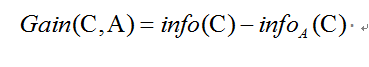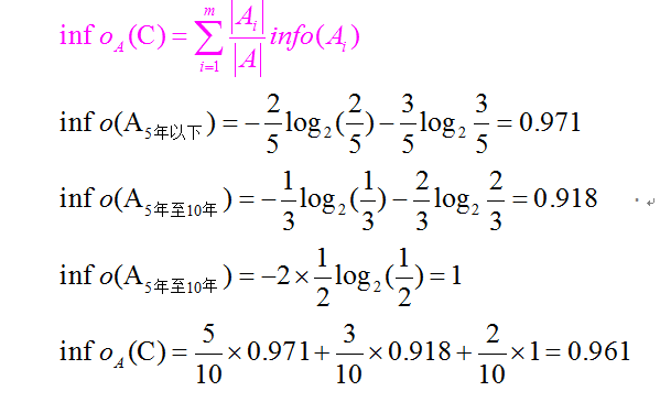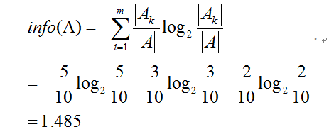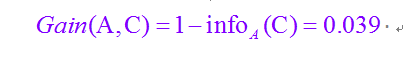 对于任一属性A有,有m个属性值,则用属性A对样本进行划分获得的信息熵为: