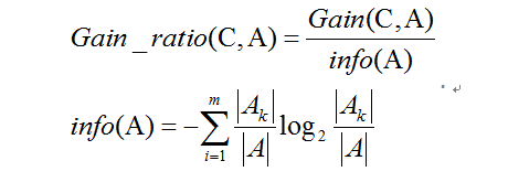 分支变量的属性水平越多,表示使用该变量越容易获得较大的熵,同时亦代表该分支属性分支特性不显著,因此会倾向选择具有较小熵值的属性为分支变量。而信息增益比的衡量准则倾向于选择具有较小熵值的属性,而较不会考虑具有较高信息增益值的属性,特别是当熵值趋近于0时;为了避免,故先计算出所有候选属性所带来的平均信息增益值,并仅从具有高于平均信息增益值的候选属性中,找出具有最小熵值的属性作为分支变量。