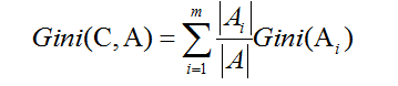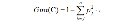 Gini(C)反映从数据C中随机抽取两个样本,其类别标记不一致的概率。因此,Gini(C)越小,则数据集C的纯度越高,每次应选基尼指数最高的那个属性作为分支变量。属性A的基尼指数定义为:
