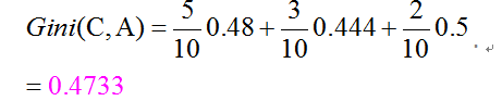 这里,计算Gini(Ai)时还是把参数C换成Ai就行了,方法一样,完成递归。