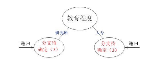 显然,教育程度的信息增益最大,即教育程度作为分支属性能得到较多信息,因此以教育 程度作为分支变量。