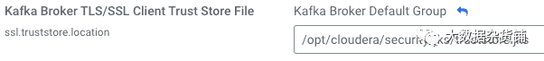 如上所述,Kafka需要信任颁发给您的客户的证书。如果这些证书是由与Kafka Broker证书不同的CA签名的,则需要将客户端证书的CA添加到Kafka信任库中。您可以在Cloudera Manager的以下属性中找到信任库的位置: