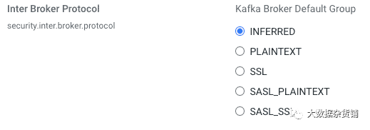 代理间通信所使用的安全协议由Kafka的security.inter.broker.protocol属性控制。Cloudera Manager将此属性的默认设置设置为INFERRED 。
