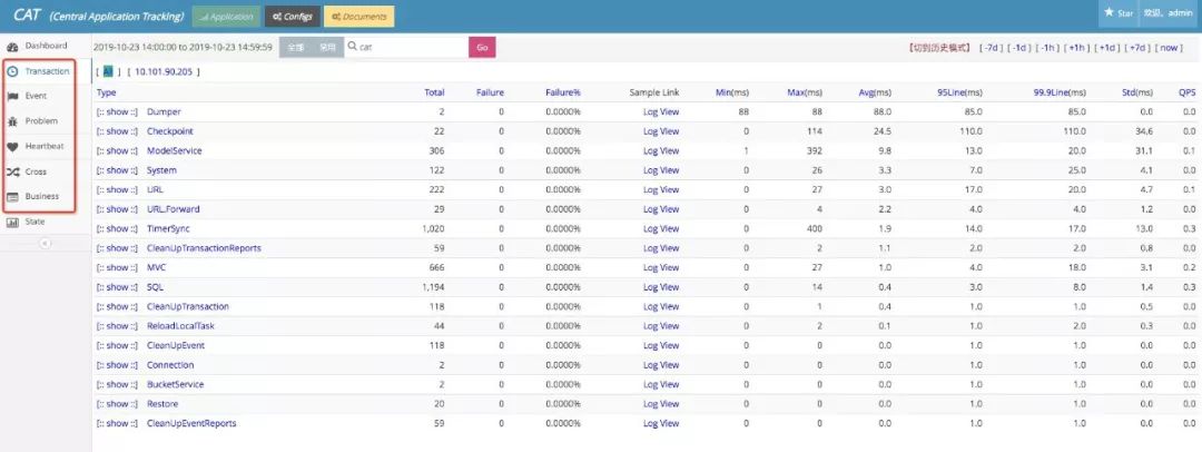 CAT 没法查看所有 type 汇总后的响应时间和 QPS , EMonitor 可以灵活的自由组合 type 和 name 进行聚合。