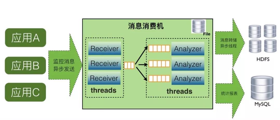 对 Transaction、Event 等消息模型按照 type 和 name 进行当前小时的聚合,历史小时的聚合数据写入到 MySQL 中。