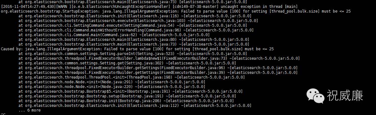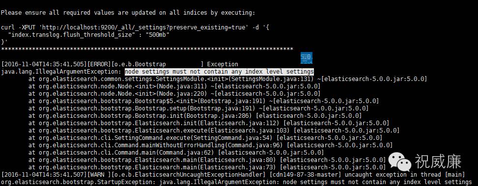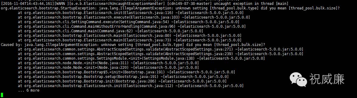 如果在之前的版本中设置了不支持的属性,节点会正常启动只是不会起作用也不会抛出异常提示,但是在5.0.0版本中,如果设置不当的话会抛出异常如我进行这样设置会抛出如下的异常信息。