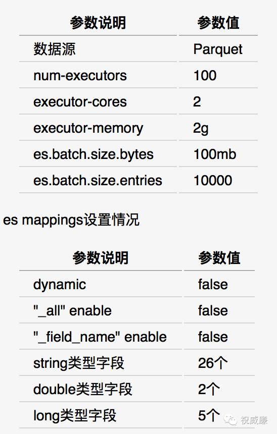 在相同硬件环境及配置相同的情况下,我们分别对ElasticSearch5.0.0和ElasticSearch2.4.1版本的建立索引的性能进行了对比测试。目前我们测试通过威廉大神开源的streamingpro项目(https://github.com/allwefantasy/streamingpro),进行简单的配置从Parquet导入数据到ElasticSearch集群。