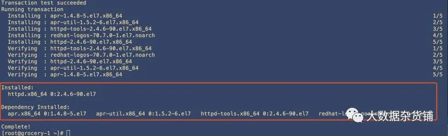 [root@xuefeng-1 ~]# sudo yum -y install httpd