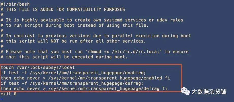 if test -f sys/kernel/mm/transparent_hugepage/enabled; then echo never > sys/kernel/mm/transparent_hugepage/enabled fiif test -f sys/kernel/mm/transparent_hugepage/defrag; then echo never > sys/kernel/mm/transparent_hugepage/defrag fi