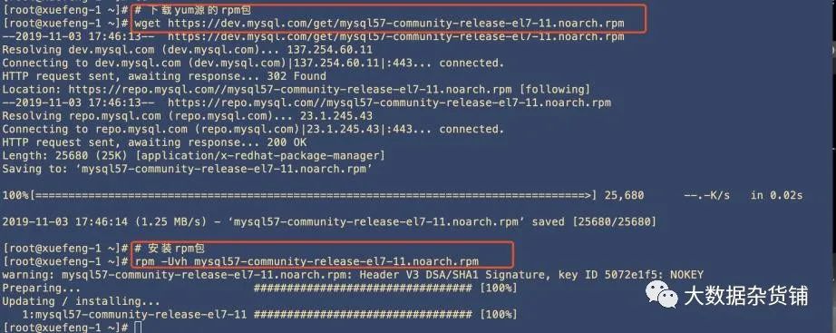 wget https://dev.mysql.com/get/mysql57-community-release-el7-11.noarch.rpm