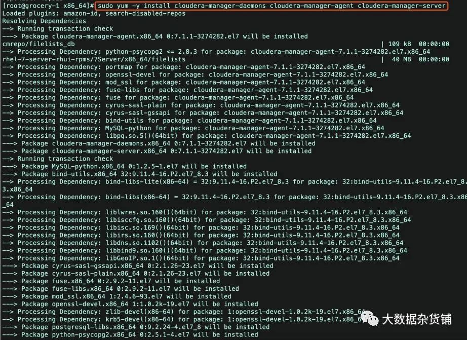 sudo yum -y install cloudera-manager-daemons cloudera-manager-agent cloudera-manager-server