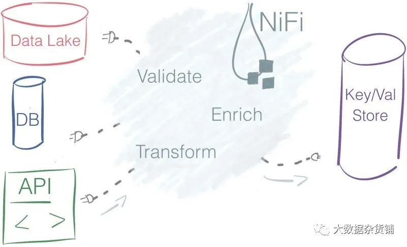Apache Nifi鸟瞰视图-Nifi从多个数据源中提取数据,对其进行充实并转换以填充到键值存储。