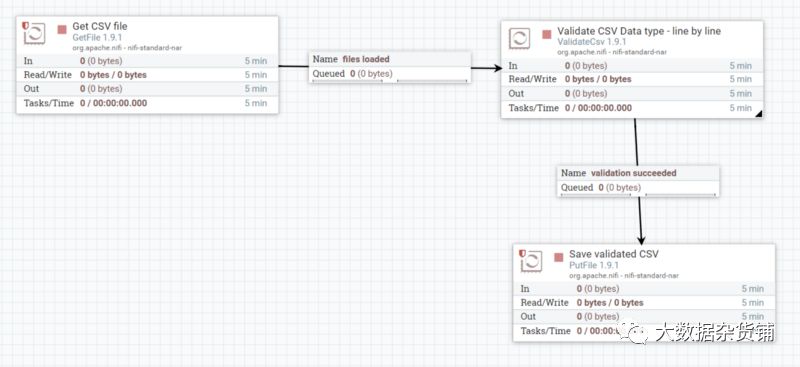 通过Nifi画布看到的简单验证数据流