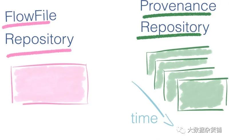 如果您只有使用FlowFile信息库的最新系统图片,则来源资料库会为您提供照片集- 视频。您可以倒退到过去的任何时刻,研究数据,并从给定的时间重放操作。它提供了数据的完整沿袭。