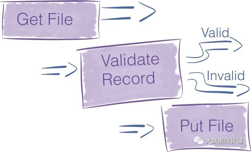 这是疯狂的水流。就像您的应用程序处理疯狂的数据流一样。如果您独自完成所有工作,那么很难将数据从一个存储路由到另一个存储,应用验证规则并解决数据治理,大数据生态系统中的可靠性问题。