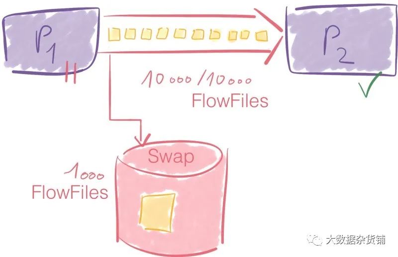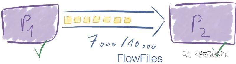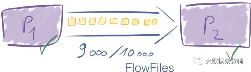 假设您在两个处理器之间最多只能有10000个FlowFiles。在某个时候,连接中有7 000个元素。这是确定的,因为限制为10 000 P1仍然可以通过该连接发送的数据P2。