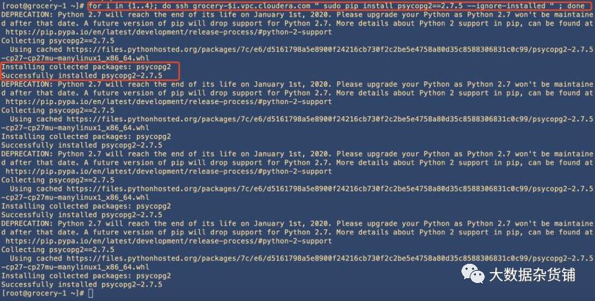 python-psycopg2 -Cloudera Manager 7对软件包具有依赖性 python-psycopg2。Runtime 7中的Hue需要psycopg2比Cloudera Manager依赖项更高的版本。有关更多信息,请参见安装psycopg2Python软件包。