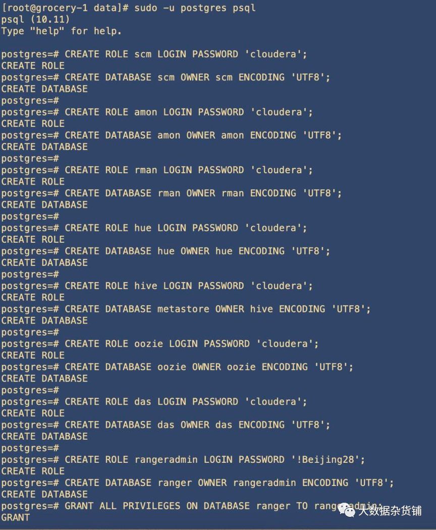 在创建元数据库时,不需要再创建Navigator和Sentry相关的元数据库,但需要创建Ranger服务相关的元数据库。