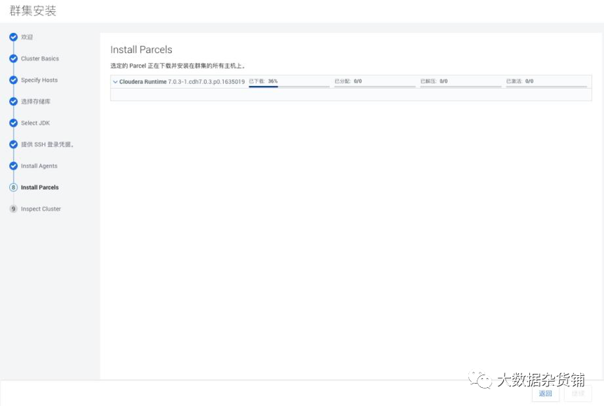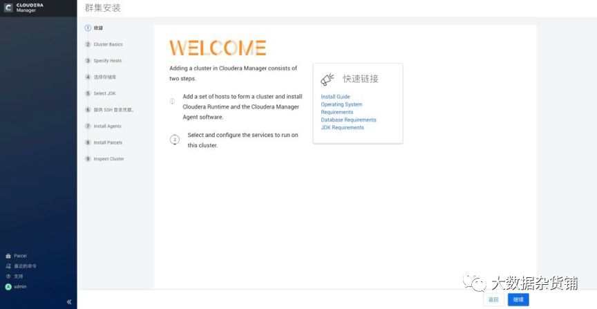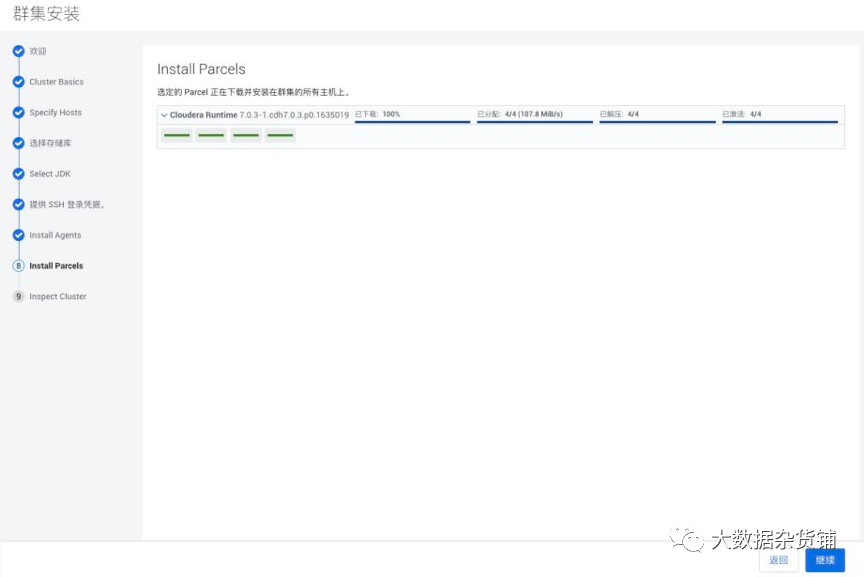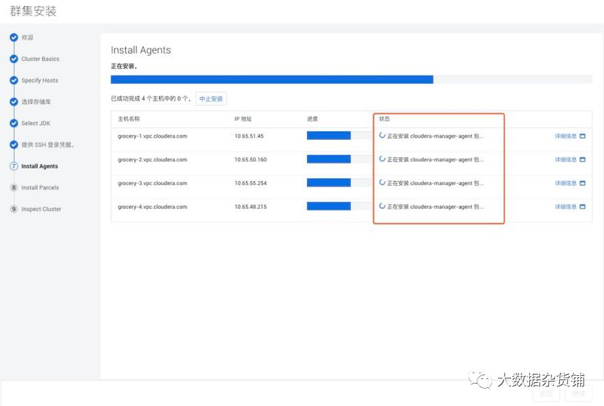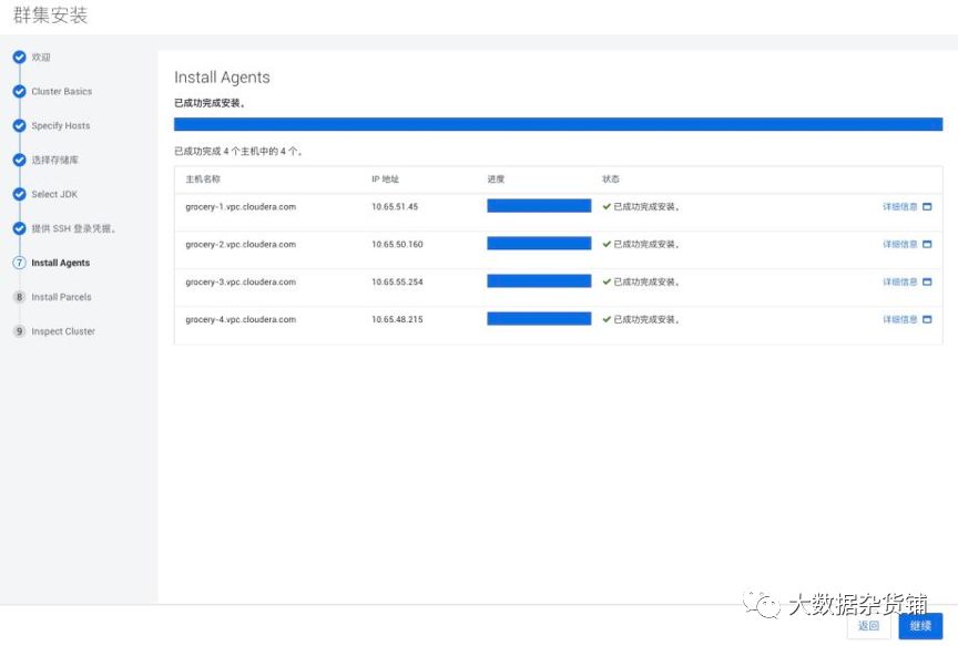 8. 点击“继续”,进入下一步,安装Cloudera Manager相关到各个节点