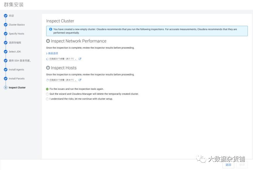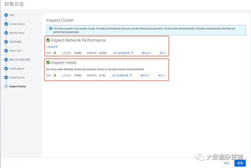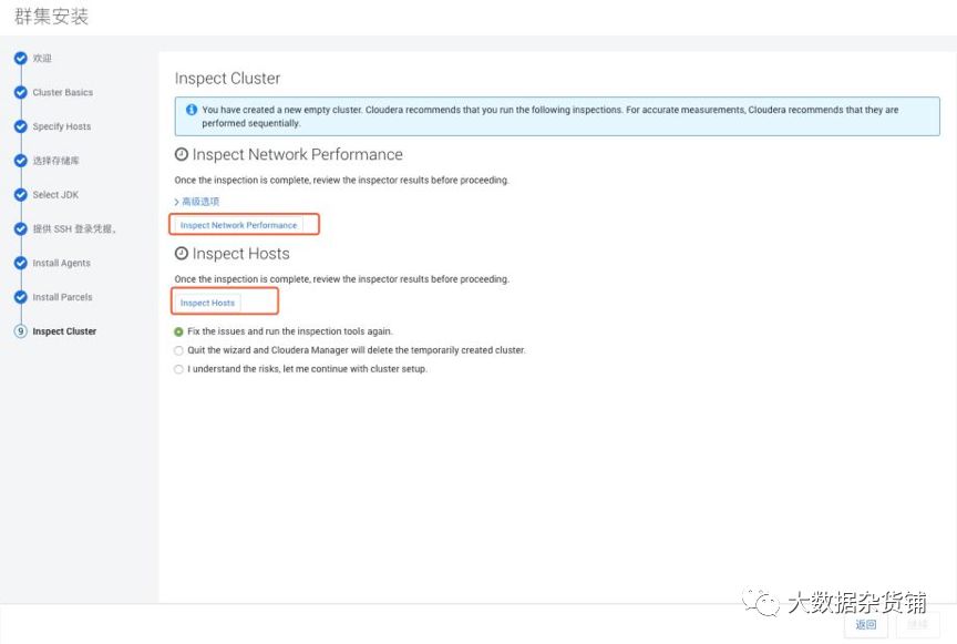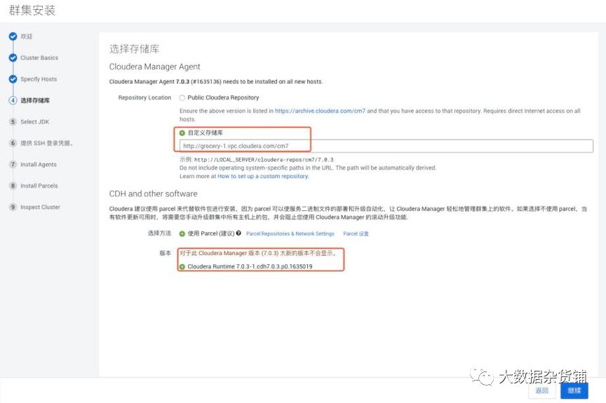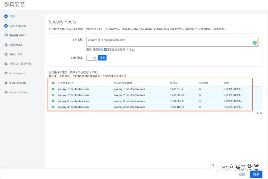 9. 点击“继续”,进入下一步安装cdh到各个节点