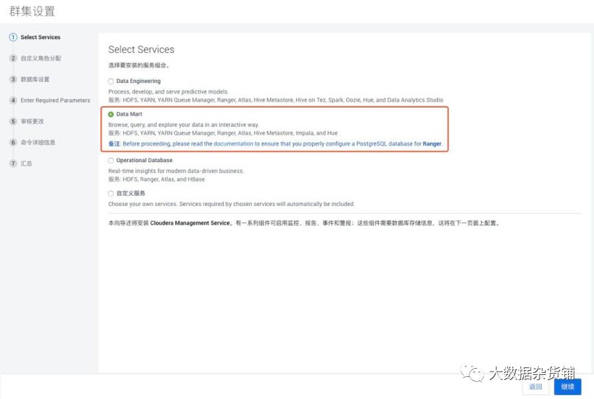 选择需要安装的服务,根据需要选择,这里随便选择Data Mart,也可以自定义服务