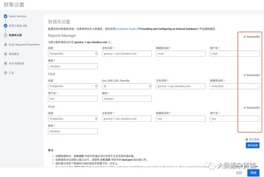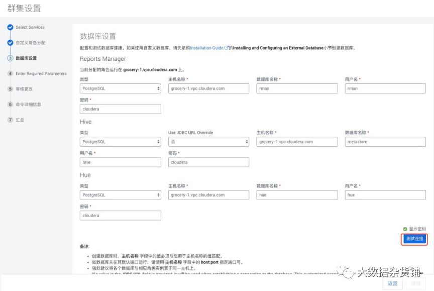 笔记:Cloudera建议您使用与群集节点的操作系统相对应的数据库的默认版本。如果选择使用默认数据库以外的数据库,请参考操作系统的文档以验证支持。对所有自定义数据库使用UTF8编码。