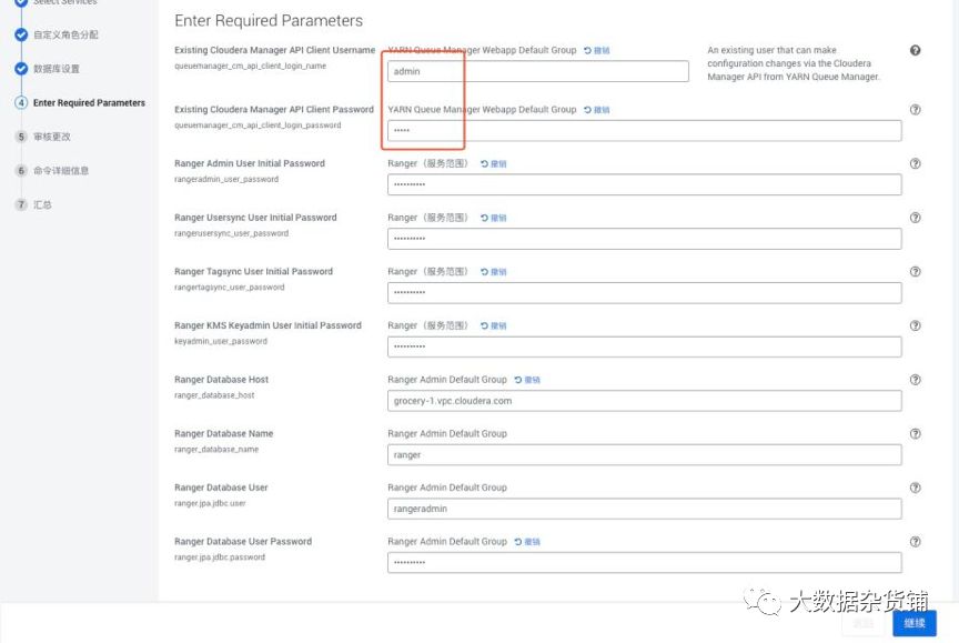 Ranger相关的密码,都需要包含至少一个字母与一个数字,为了安装方便都输入admin@123